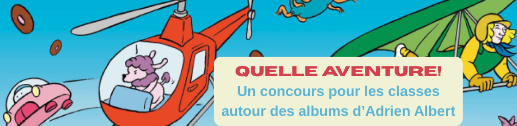 Chouette, un concours pour les classes autour de l'univers survitaminé d'Adrien Albert! Vous voulez en savoir plus? C'es par ici: https://www.librairiepointvirgule.be/nos-lectures/196-edito/1132-quelle-aventure-un-concours-pour-les-classes-autour-de-l-univers-d-adrien-albert
